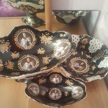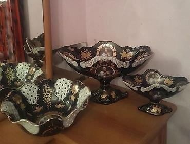 Dekorativ boşqab və şüşə meyvəqabı dəsti.