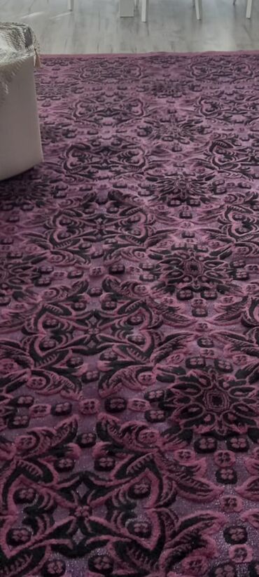 2) Bənövşəyi/şahpurpur tonlarında xalça – relyefli (kabartmalı) bitki ornamenti, tünd naxışların fon üzərində dərinlik effekti. Müasir interyerlərlə uyğun.