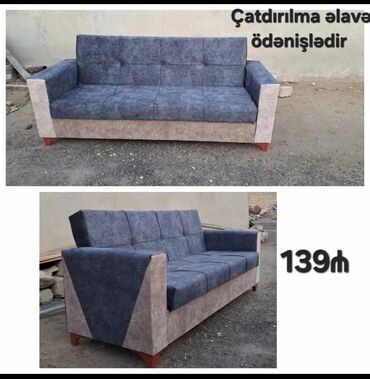 Si̇fari̇şle hazirlanir divan 139.Manat rəng seçimi var ölçü uzunluq 2m10sm açılan, bazali keyfiyyətli türkiye nabuk parçalari və 22"lik qupka sıxlığı ilə hazırlanır yastıq cütü 10m çatdırılma...