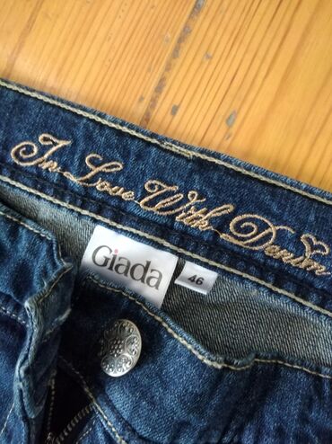 Cins şalvar, 42 razmer. 1 dəfə geyilib, belinin arxa hissəsinə balaca