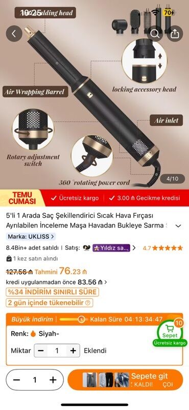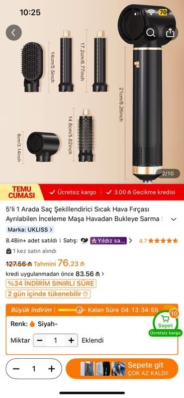 5-i 1-də Saç Şəkilləndirici – isti hava fırçası dəsti