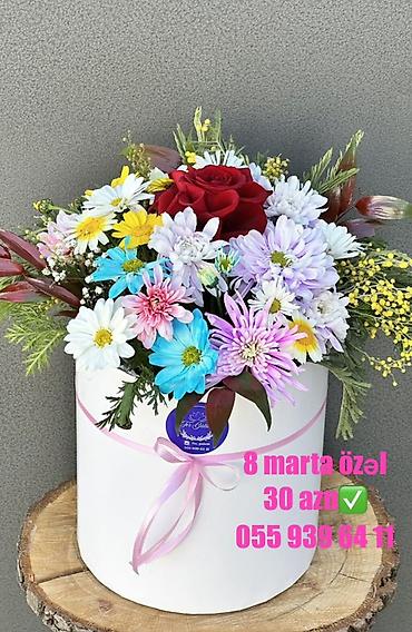 8 Mart üçün xüsusi gül kompozisiyası – şəffaf akril qutuda qırmızı qızılgüllər, üstü qırmızı lent və “8 Mart Bayramınız Mübarək” yazısı ilə. “BEYAZ FLOWERS” brend lentli təqdimat. Seçimlər: - 5 əd...