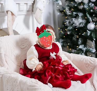 Şənliklər, fotosessiyalar və Yeni il tədbirləri üçün uyğundur. Rənglər: dərin qırmızı və krem. Yumşaq, rahat materiallar; körpənin hərəkətini məhdudlaşdırmayan kəsim. 6–18 aylıq körpələr üçün uyğun ola biləcək ölçü aralığına malik kombinə edilə bilən dəst.