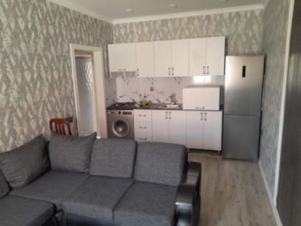 Şəhər mənzili – geniş və işıqlı - Plan: ayrı qonaq otağı və yataq otağı - İnteryer: açıq tonlarda dekor, alçaq-karnizli tavan və LED spot işıqlandırma - Döşəmə: iri ölçülü mərmər naxışlı kafel - M...