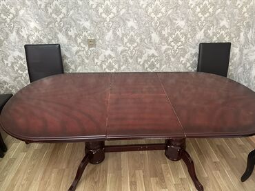 stolun ölçüləri. eni -90sm,uzunluğu -170sm, açılanda -225sm. 6 ədəd stul. firma əmbawood. yaxşı vəziyyətdədir