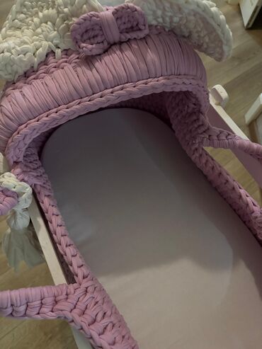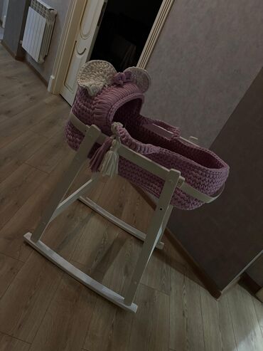 Dəstəkli, daşına bilən körpə beşiyi – həm evdə, həm də otaqlar arasında rahat istifadə üçün.