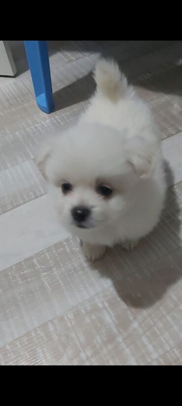 Ağ tüklü, kiçik ölçülü it balası - Cins: kiçik dekorativ toy tipli (Maltese/bişon tipajında) - Rəng: tam ağ - Xəz: yumşaq, uzun və tüklü, aşağı tük tökümü üçün müntəzəm daraq tələb edir - Boy/çəki:...