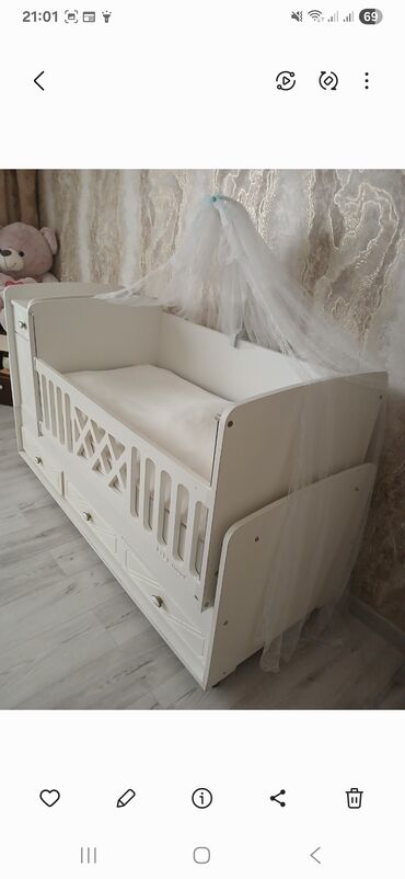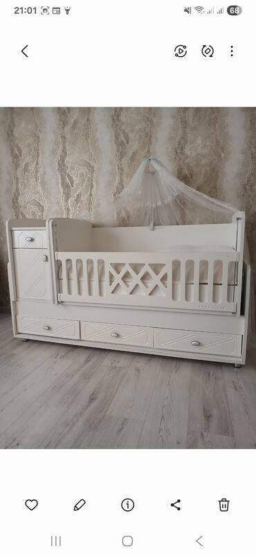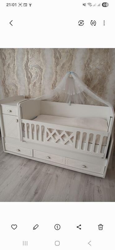 Ağ rəngdə çoxfunksiyalı uşaq az işlənib matrası da var pərdəsidə.