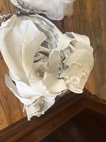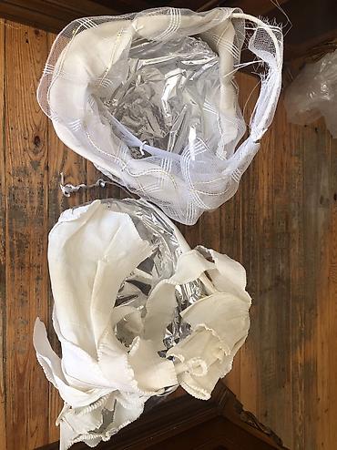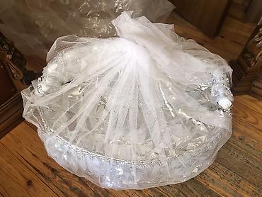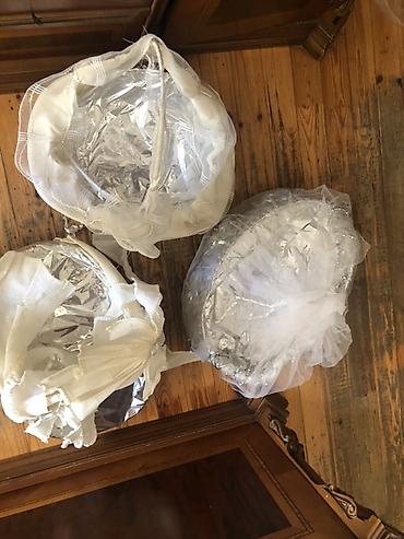 - Material: bərk əsas, iç hissə parlaq folqa örtüklü (çıxarıla bilir), üst hissə ağ tül və parçadan dekor.