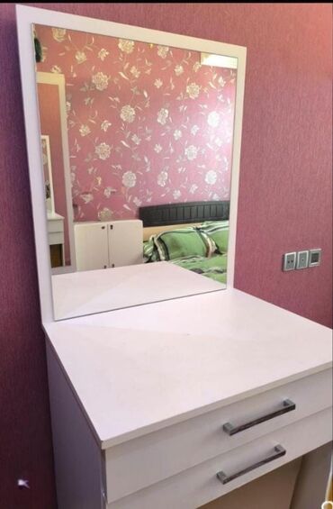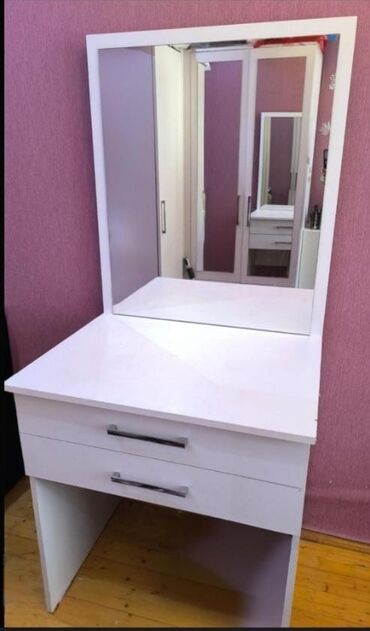 GüzgülüAğ rəngli makiyaj masası və böyük güzgü