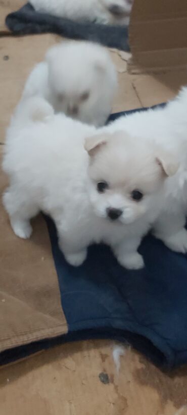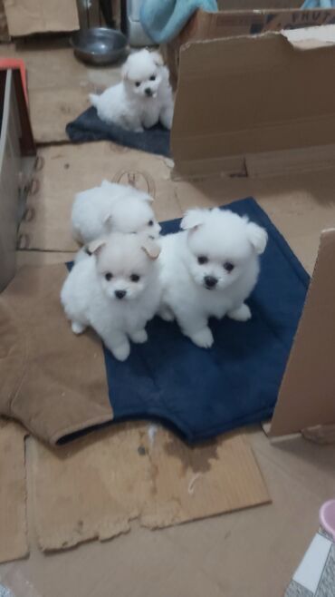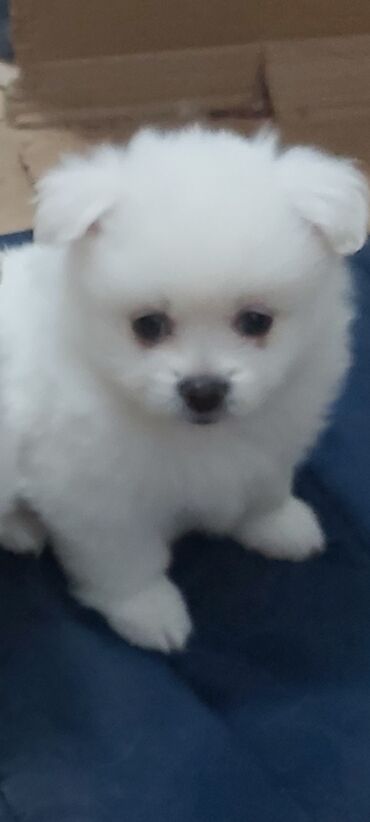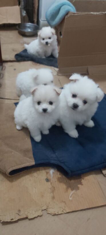 Ağ rəngli, xırda ölçülü balaca it balaları, maltez bolonka, 45 günlükdülər, çox çirin və oynağan balalardl.