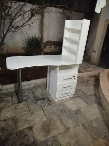 Məhsul: Ağ rəngli iş/oxu masası – rəf və çekmecəli model
