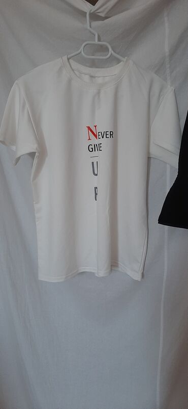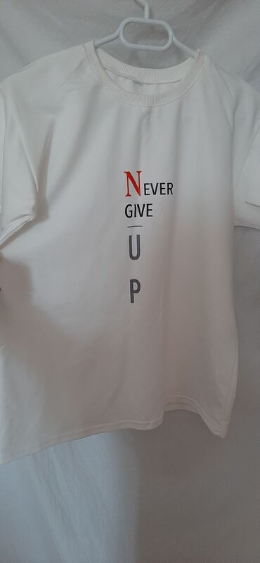 Ağ rəngli qısaqoll T‑şört - Ön hissədə şaquli çap: “Never Give Up”