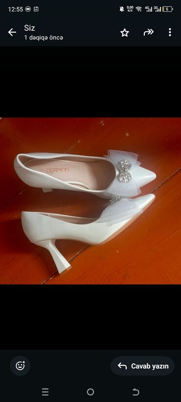 Uzun zamandı geyinilmir normal veziyyetdedir. Ağ rəngli klassik qadın tuflisi - Model: sivri burun, qapalı üzlü - Rəng: qar bəyaz - Topuq: nazik stilet, təxminən 10–11 sm - Material: hamar tekstura...