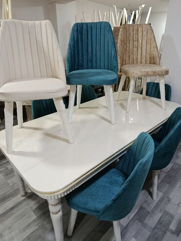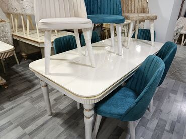 Qeyd: Şəkildə masanın ətrafında 6 stul və üstündə əlavə nümunə stulları nümayiş olunur.