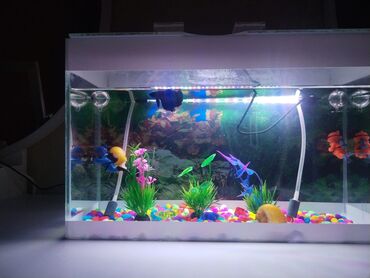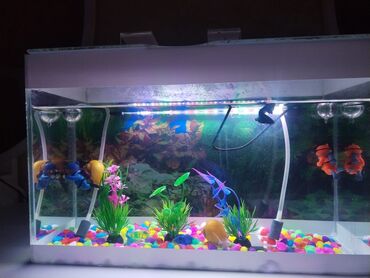 🔹 Akvarium: 40*20*28h. (Şəffaf şüşə, premium silikon, mavi fon) 25 AZN 🔹Dekorlar: 3,5 manatdan başlayır. 🔹Qrunt: 4 AZN, Təbiidir, hazır yuyulub. 🔹Akvarium işığı 9 AZN 🔹Balıqlar əlavə etmək olar: 1 ...