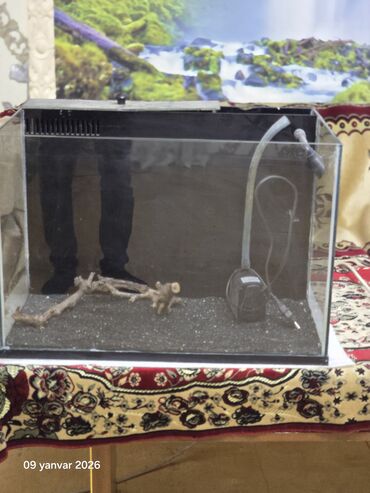 Salam akvarium satiram olcusu uzunlugu 44 hundurluyu 30 eni 26 santidi metir icinde 9 edet balig var isigi filtiri su qizdirani var ve onuda bildirimki zavod isdehsalidi