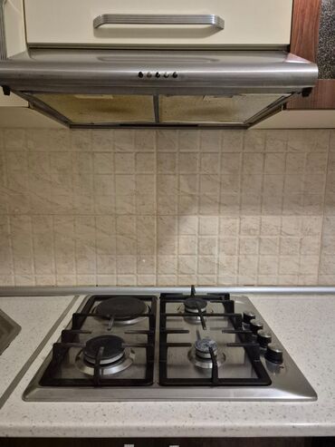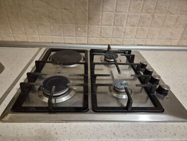 Quraşdırılan kombi soba paneli – qaz + elektrik - 3 qazlı ocaq gözü və 1 elektrikli bişirmə diski (sol tərəf) - Mexaniki idarəetmə: sağ hissədə 4 fırladıcı düymə, alov tənzimləmə nişanları - Dəmir...
