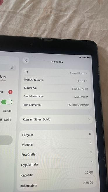 - iPadOS versiyası: 16.3.1 (şəkillərdə 26.3.1 kimi görünən bölmə sistem dili/çıxışı səbətilə iPadOS 16.3.1-dir)