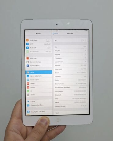 Ipad mini 1, wi-fi cellular 64 gb. Ən son yeniləmə IOS 9.3.6 - dır. Köhnə model olduğu üçün, ən son yeniləmə getmir artıq. İşlənmişdir, yeni kimidir. Whatsapp vasitəsi ilə əlaqə saxlaya bilərsiniz.