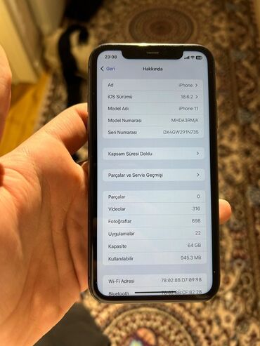 IPhone 11, 128 GB, Ağ, Zəmanət, Face ID, Sənədlərlə