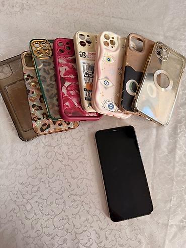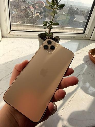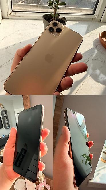 Telefon qızılı korpuslu iPhone 11 Pro Max modelidir, üçlü kameranın çoxşaxəli çəkim imkanları və böyük OLED ekranı ilə media, foto və gündəlik istifadə üçün uyğundur. Şəkillərdə təqdim olunan müxtəlif keyslər də birlikdə verilir.