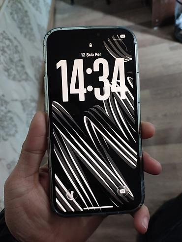 Şəkillərdə: pasifik mavisi korpus, düz kənarlı dizayn, üçlü kamera modulu və Lightning girişli alt panel görünür. Ekran aktivdir və Face ID kəsiyi olan ön panel nümayiş etdirilib. Bu model foto/video həvəskarları və yüksək performans axtaranlar üçün uyğundur.