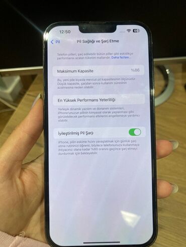 - Batareya: Maksimum tutum 86% (şəkildə “Pil Sağlığı” bölümündə göstərilib), “İyileştirilmiş Pil Şarjı” aktivdir