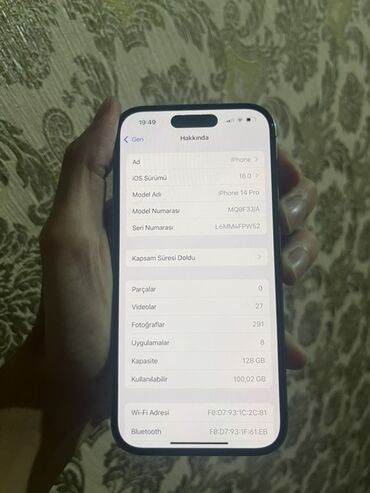 Apple iPhone 16 Pro – 128 GB Xüsusiyyətlər: - Rəng: gümüşü/boz ton - Yaddaş: 128 GB (təxminən 107.93 GB boş) - iOS versiyası: 16 Pro modelində göstərilən 26.1 - Ekran: Dynamic Island kəsiyi ilə ta...