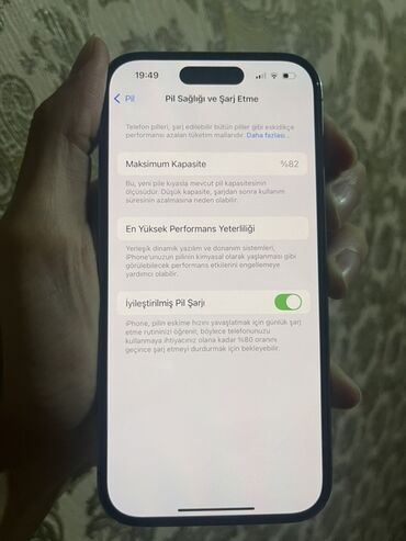 - Batareya: Maksimum tutum 82% (şəkildəki “Pil Sağlığı” bölməsinə baxın); Optimize edilmiş şarj aktivdir