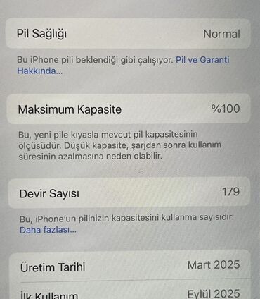 - iOS Batareya Məlumatı ekranına görə: