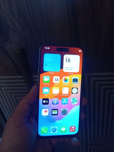 IPhone 15 pro max 256 89pil rengi boz (Dynamic Island dizaynlı model ) barter olunur yalniz 16 pro ve 16pro max 93+ Problemi:ekran orginalnan 1e1 deyisilib ve balaca bir lekesi var cizigi falan yo...
