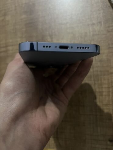 Apple iPhone – mavi rəngdə, üçlü arxa kamera moduluna malik model. Xüsusiyyətlər: - Rəng: açıq mavi (mat arxa səth, Apple loqosu). - Korpus: düz kənarlı dizayn, metal çərçivə görünüşü. - Kamera si...