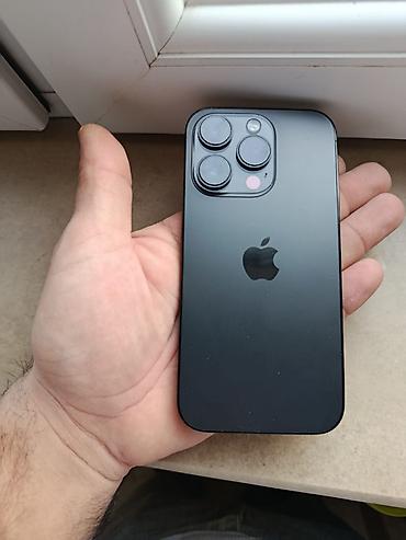 Apple iPhone (Pro seriyası) - Rəng: Qara/Qrafit - Korpus: mat arxa səth, paslanmayan polad/alüminium çərçivə, düz kənarlar - Ekran: Dynamic Island-li tam ekran, yüksək parlaqlıq və rəng dəqiqliyi ...