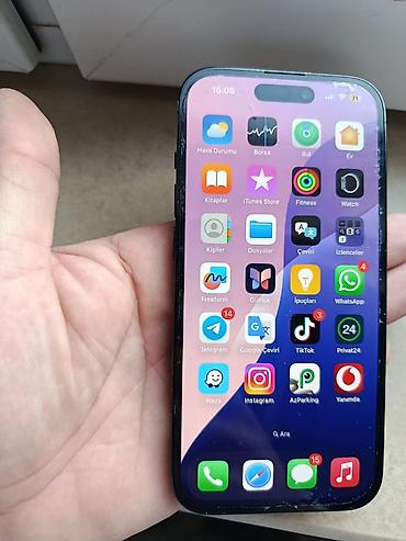 Məhsul: Apple iPhone (Pro seriyası, qara/space black rəng) - Ekran: tam ekran OLED, Face ID çentiği, Always‑On kilid ekranı - Arxa kamera sistemi: 3 linza (geniş, ultra‑geniş, telefoto) + LED fləş ...