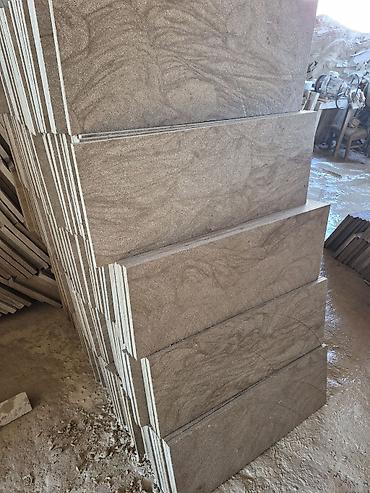 - Təbii daşdan kəsilmiş plitələr və dekorativ elementlər