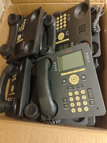Ofis, çağrı mərkəzi və PBX/IP-telefoniya sistemləri üçün funksional Avaya aparatları. Şəkillərdə real məhsulların arxa bağlantıları və idarəetmə düymə qrupları göstərilib.