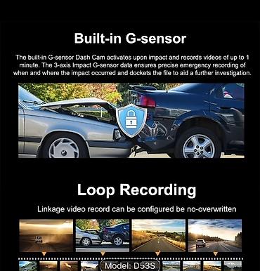 Avtomobil DVR – Model: D53S Xüsusiyyətlər: - 1080P Dual Lens: Eyni