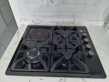 ALEV quraşdırılan qaz paneli - 3 qaz ocağı + 1 elektrikli göz - Sağda mexaniki idarə paneli: 4 ədəd fırlanan düymə, alov tənzimlənməsi -ruçkaları istiliye davamli metal yanmaz erimez - reşotkala...