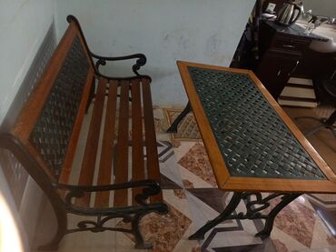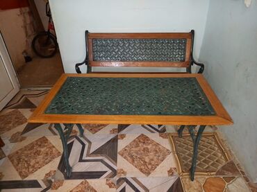- Ölçü təxmini: Skamya 2 nəfərlik; masa düzbucaqlı, orta ölçü (şəkillərdə görünən nisbət)