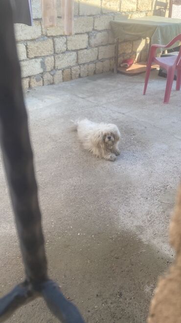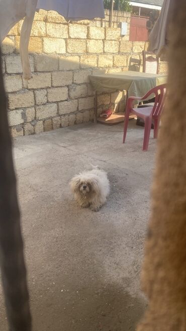 Şirin, xırda ölçülü balaca it balası - Cinsi: kiçik ölçülü dekorativ (yığcam bədən quruluşu, qabarıq tüklü) - Rəng: açıq krem/bej - Tük tipi: yumşaq, sıx, ipək kimi; az tökülən, mütəmadi daraqla a...