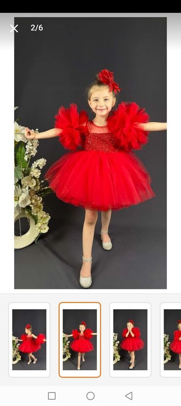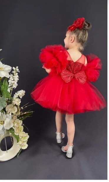 Qırmızı qız uşağı paltarı 1-2 dəfə geyilib. - Rəng: parlaq qırmızı -