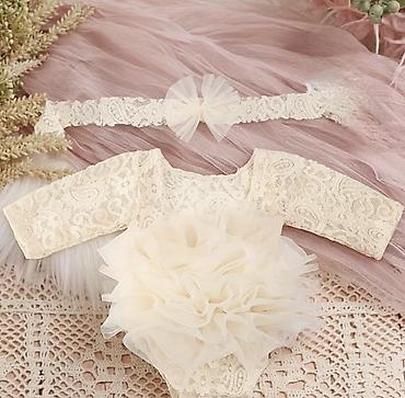 Məhsul: Körpə üçün fotoşəkil çəkilişi geyim dəsti Təsvir: - 2 hissəli dəst: qolsuz olmayan krujeva bodi + uyğun krujeva saç lentı (tül güllü). - Rəng: ağ. - Dizayn: incə krujeva naxışlı bodi, bel ...