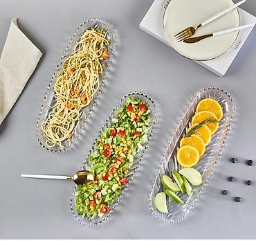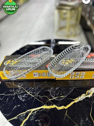 Şüşə oval qabaq dəsti - 2 ədəd eyni dizaynlı, fərqli ölçülü oval şüşə boşqab - Material: qalın, şəffaf şüşə - Naxışlı səth və kənar haşiyə - Salat, qəlyanaltı, meyvə və desertlər üçün uyğun - Masa...