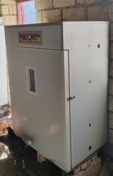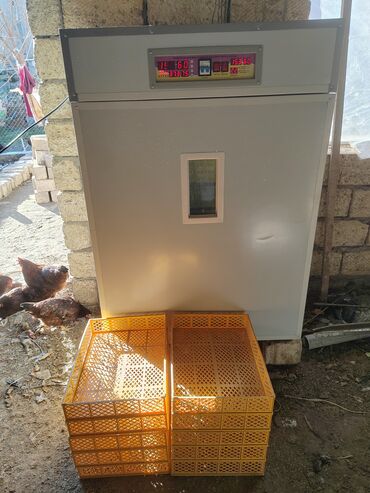 Təsvir edilən qurğu fermer təsərrüfatları və damazlıq üçün uzunmüddətli və stabil inkubasiya prosesini təmin edən peşəkar kabinet tipli inkubatordur. Parametrlər paneldən dəqiq tənzimlənir, çoxsaylı rəflər sayəsində yüksək məhsuldarlıq verir.
