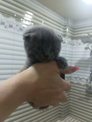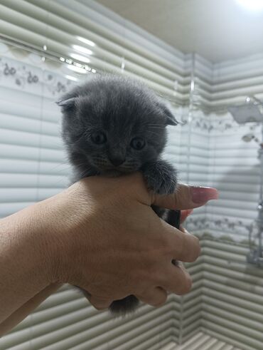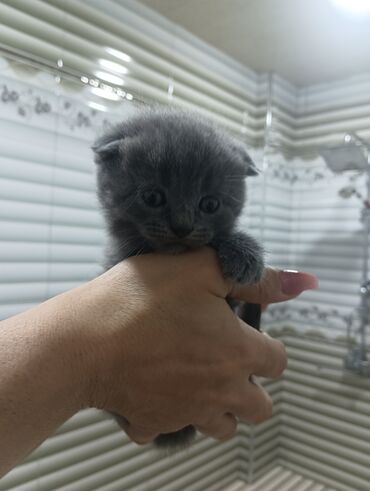 Scottish Fold/British tipli balaca pişik balası - Rəng: açıq krem-gümüş (silver shaded tipli), yumşaq, qısa tüklü - Qulaqlar: qıvrıq (fold) və ya yarı-dik variantlı balalar - Gözlər: böyük, mavi-b...