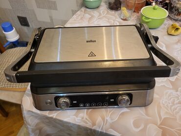 Braun elektrikli kontak qril – çoxfunksiyalı mətbəx qril/sandviç aparatı Xüsusiyyətlər: - İki tərəfli qızdırılan qril səthləri: yuxarıda hamar lövhə, aşağıda çertikli lövhə – ət, tərəvəz, balıq, s...