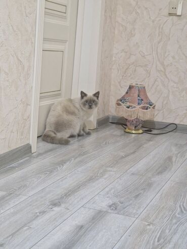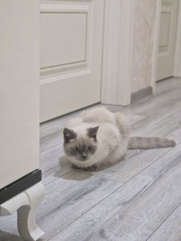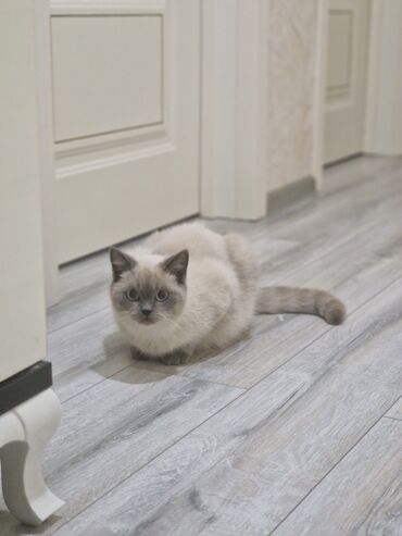Britan pişik balası – krem rəngli, mavi-boz “point” ləkələri ilə.