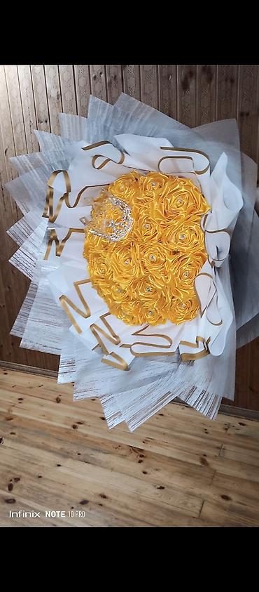 Hədiyyəlik gül buketi sifarişlə yığılır. Lentlə yığılan gül buketi 30 azn, sabun gülü ilə yığılan buket 50azn. Gül sayına görə qiymətlər fərqlidir. Whatsapp aktivdir.
