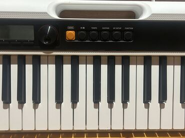 - Üst paneldə LCD ekran, böyük çevirmə düyməsi və sürətli idarəetmə düymələri: Home, Play/Stop, Tempo, Sustain, My Setup, Function